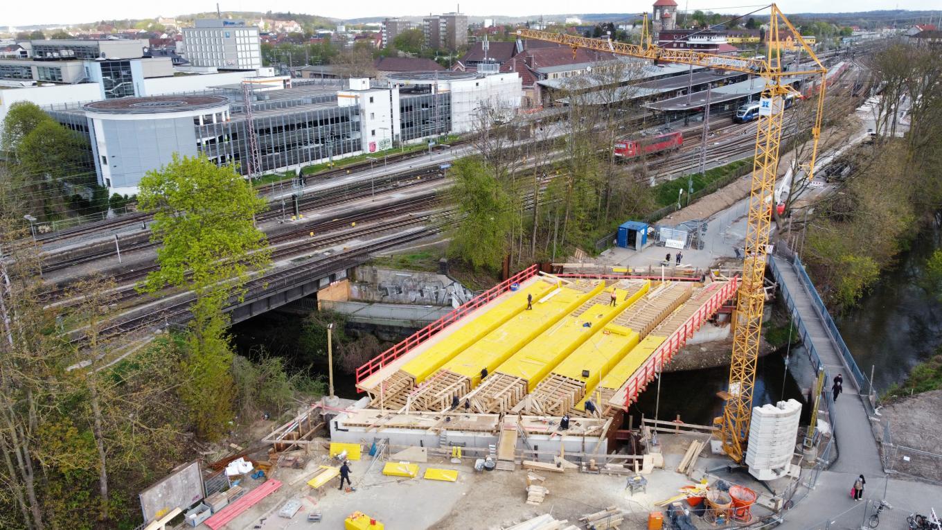 Die Baustelle der Hasebrücke umfasst den Ersatzneubau der Straßenüberführung Hamburger Straße über die Hase in unmittelbarer Nähe zum Osnabrücker Hauptbahnhof.. Diese war aufgrund von Standsicherheitsmängeln nur noch eingeschränkt für den Verkehr freigegeben. Der neue Überbau wird als vorgespannter Plattenbalkenquerschnitt ausgeführt. Dieser Ersatzneubau ist eine vorbereitende Maßnahme für das Bauvorhaben Ersatzneubau SÜ Hamburger Str., welches ebenfalls bei uns im Auftrag ist. In der letzten Woche konnten wir die Schalarbeiten abschließen und direkt mit den Bewehrungsarbeiten beginnen, sodass der Überbau voraussichtlich in 6 Wochen betoniert werden kann.