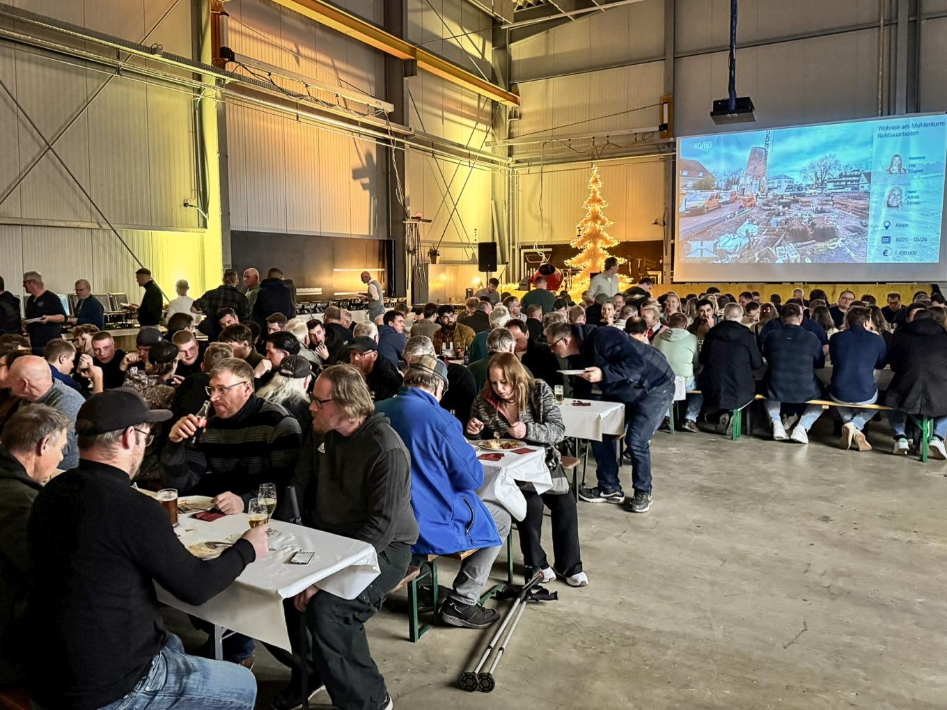 Ein ereignisreiches und erfolgreiches Jahr neigt sich dem Ende zu. 2025 war für uns geprägt von anspruchsvollen Projekten, neuen Herausforderungen und vor allem von einem starken Teamgeist. Gemeinsam haben wir viel bewegt, umgesetzt und nachhaltig gestaltet. Den offiziellen Auftakt unserer Weihnachtsfeier bildete zunächste eine kurze Betriebsversammlung. In diesem Rahmen blickten wir gemeinsam auf das vergangene Jahr zurück, informierten über Neuerungen im Unternehmen und gaben einen Ausblick auf das kommende Jahr. Ein besonderer Höhepunkt im Ausblick waren die neuen Projekte und das 90-jährige Hofschröer-Betriebsfest, das wir im April 2026 gemeinsam feiern werden – ein bedeutendes Jubiläum, das unsere Geschichte und unseren Zusammenhalt widerspiegelt.
