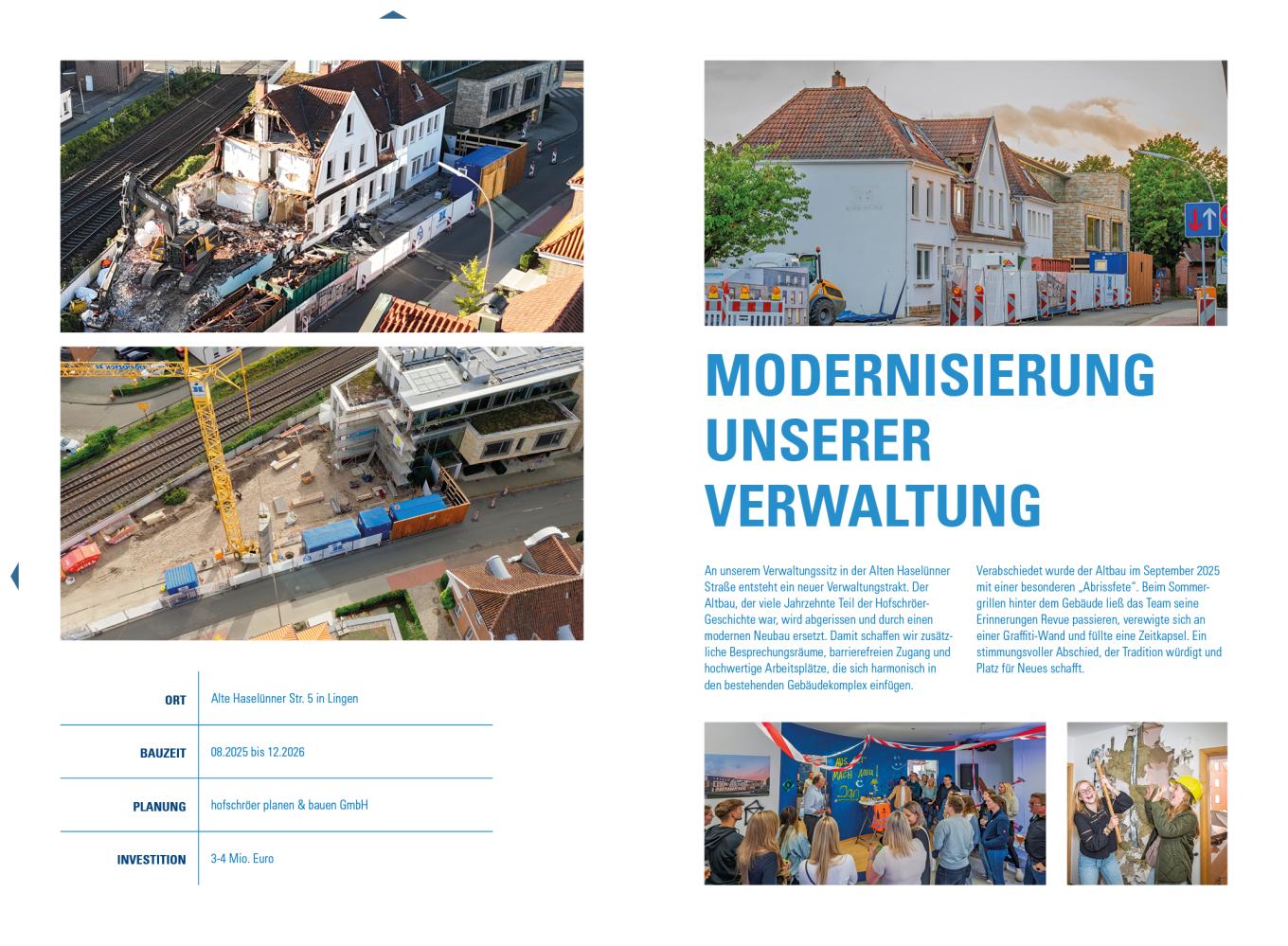 Während draußen auf den Baustellen Großes entstand, haben wir auch intern weiter an unserer Zukunft gebaut. Die Modernisierung unserer Verwaltung schafft moderne, barrierefreie Arbeitsplätze und fördert ein Arbeitsumfeld, in dem sich Austausch, Kreativität und Kollegialität entfalten können.