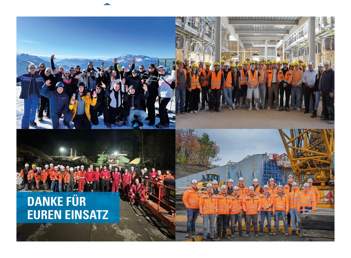 All diese Entwicklungen wären ohne unser starkes Team nicht möglich. Jeder und jede Einzelne trägt dazu bei, dass wir als Unternehmen erfolgreich bleiben – mit Engagement, Verantwortung und Leidenschaft für das, was wir tun. Dafür sagen wir Danke. Ebenso gilt unser Dank den Familien, die unseren Mitarbeitenden den Rücken stärken, und unseren Geschäftspartnern, Nachunternehmern und Auftraggebern, mit denen uns eine vertrauensvolle und verlässliche Zusammenarbeit verbindet.